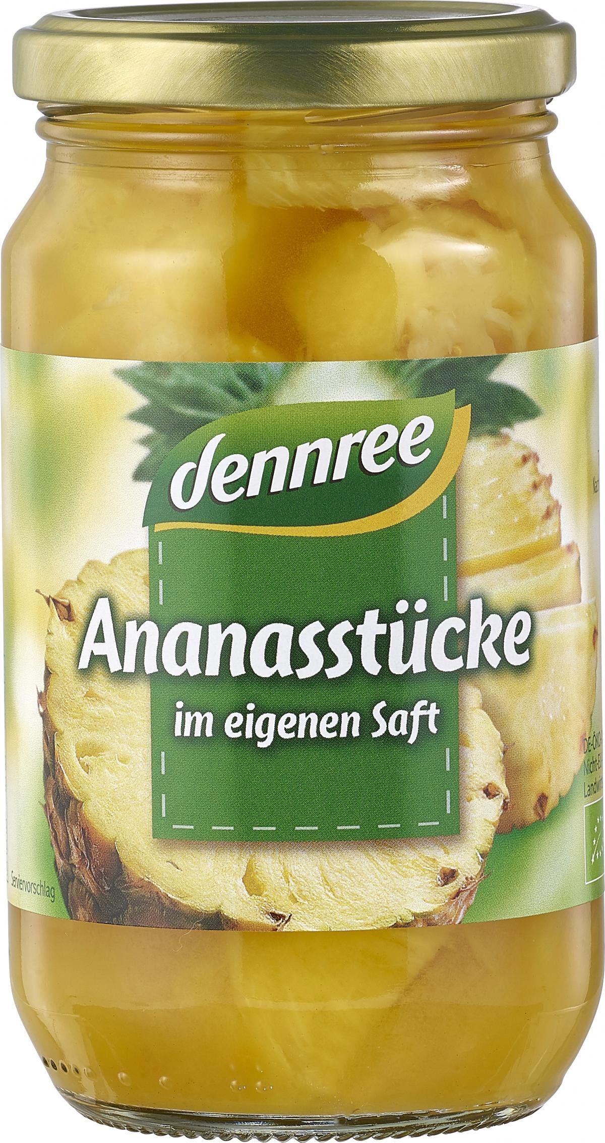 dennree Ananas-Stücke im eigenen Saft, 350 gr Glas