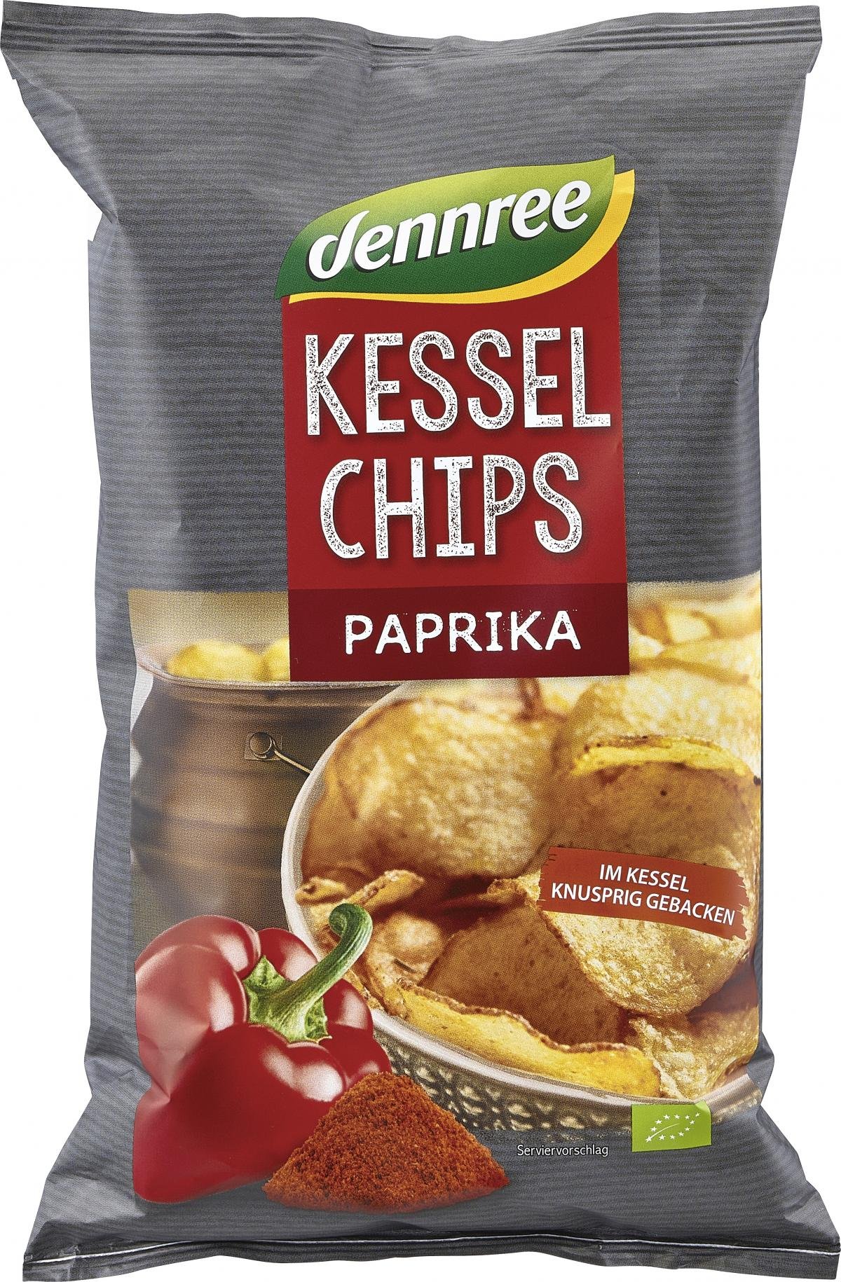 Die dennree Kesselchips werden aus europäischen Bio-Kartoffeln hergestellt. Diese werden mit Schale in Scheiben geschnitten und anschließend schonend im Kessel mit Bio-Sonnenblumenöl goldgelb gebacken sowie mit einer aromatischen Paprika-Würzmischung verfeinert.